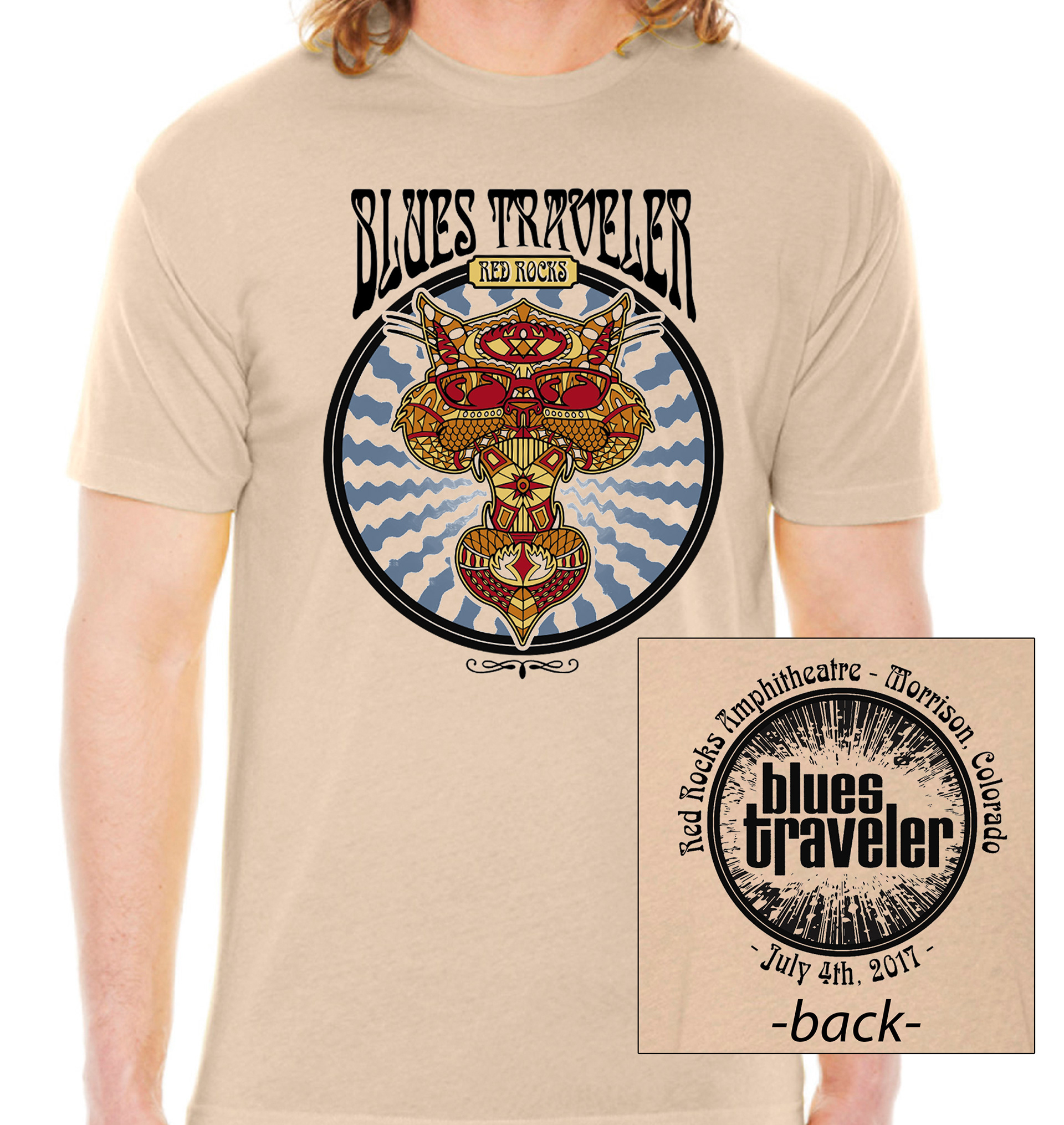 Official event T for Blues Traveler's annual July 4th concert at Red Rocks Amphitheater in Morrison Colorado.
