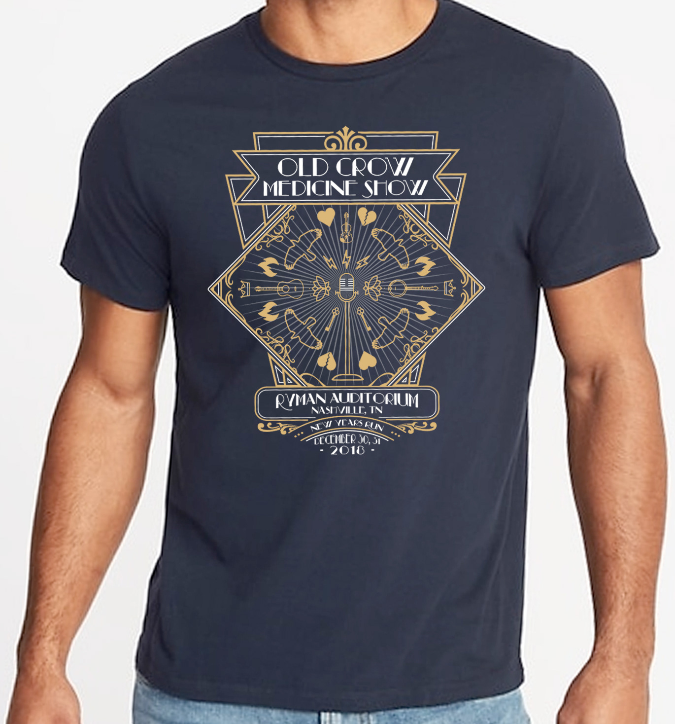 Official merchandise for Old Crow Medicine Show's New Year's Eve Run at the Ryman Auditorium in Nashville.